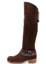 The length of the shaft can reach the middle of the calf, knee and, in some cases, to the middle of the thigh. The narrowest option is considered to be stocking boots, and loose products are more reminiscent of ankle boots with a straight cut of the bootleg. Such models are distinguished by a minimum of decor, do not have a fastener and are worn as simply as possible.