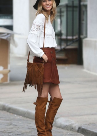 A win-win option will be the cowboy theme in drawing up the image. The ensemble with brown boots can be made up of combinations with jeans, skirts, shorts, shirts, overalls and denim jackets.