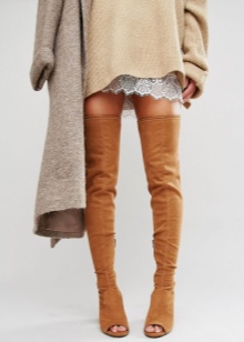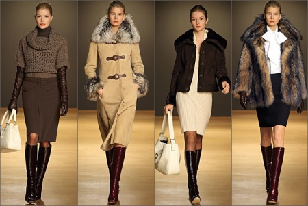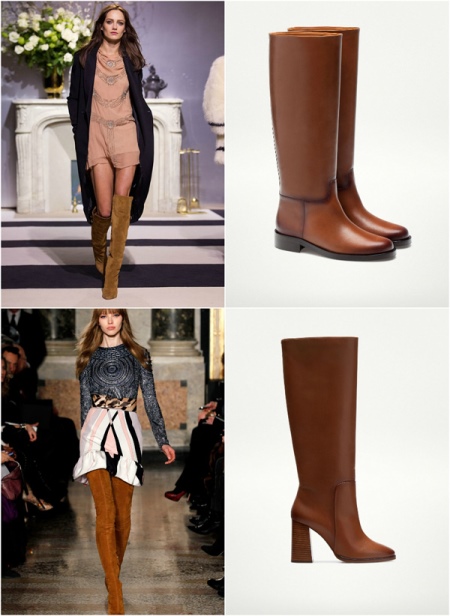 Brown boots were also the focus of attention - boots above the knee. This model has not yet fully established itself in everyday life, but is rapidly gaining momentum, even under strict dress code. Here, the imagination of the trendsetters has gained wide open spaces: models of varnish, suede, with a metallic finish are presented.
