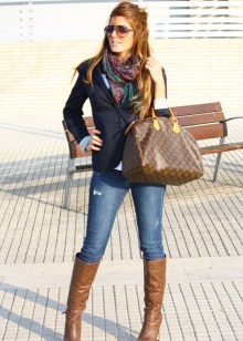 Brown boots and a jockey look.
