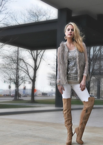 Among other performance materials are velvet and fluff (used for puffy boots). Original models from combined materials, such as suede plus leather, are gradually gaining popularity.