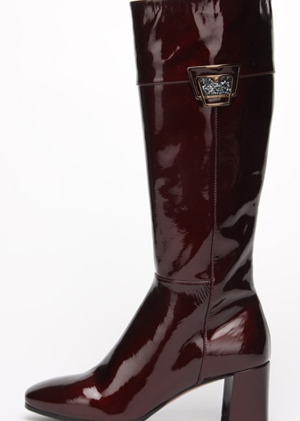 Lacquer boots are combined with a pencil skirt, opaque blouses, fitted dresses and classic trousers of strictly neutral colors. Since patent leather is an accent in itself, it is very important not to overdo it.