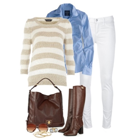 - Dark brown boots fit perfectly into the business image, especially if it is made in light colors (light gray, and beige);