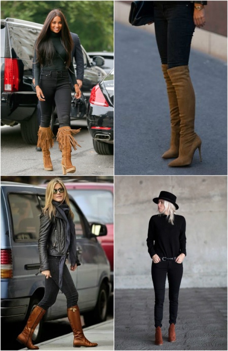 Such boots are so firmly established in the fashion arena that they have practically no weaknesses: they are equally well combined with jeans, skirts, trousers, with all items of outerwear and with almost any color.