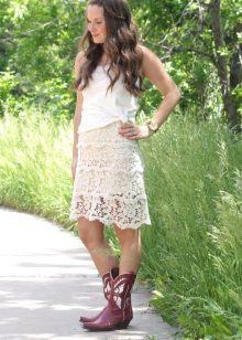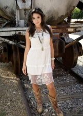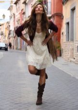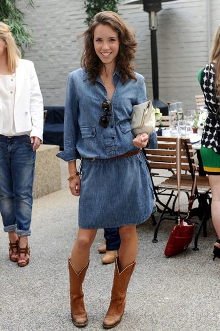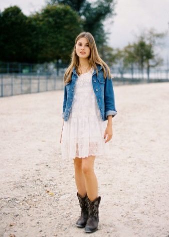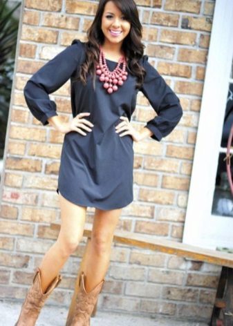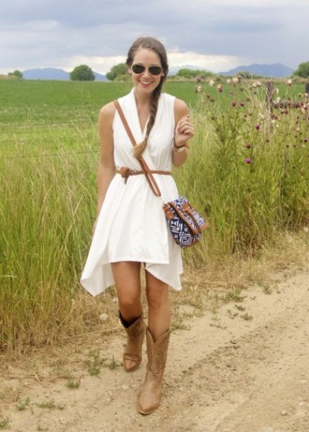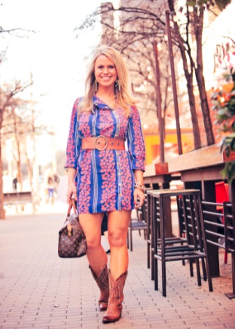 Cowboy-style boots are best combined with dresses that are simple in cut and style, summer sundresses, but not evening elegant models. An interesting addition to the image with the dress will be a belt in the color of shoes.