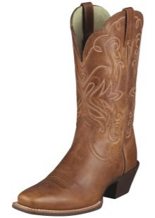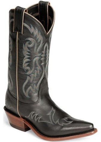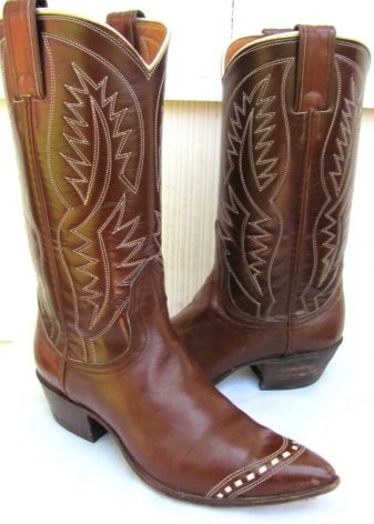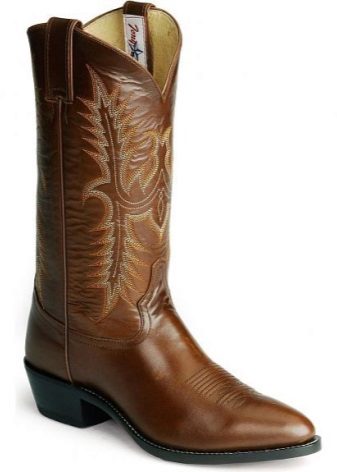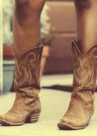 Since the Western boots are primarily used as a riding uniform, they have features aimed at comfort and safety. The heel is beveled, about four centimeters high or lower, but in this case the shoes are more likely for walking. Upper leg up to mid-calf and above, toe rounded and slightly pointed.