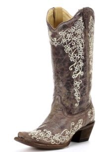 The heel of the boots is also low, straight in shape. The cape can be round or square. This type of cowboy boots is designed primarily for walking and everyday life, so the convenience of wearing is more appreciated. That is why lacing is found on such models, which allows the shoe to stay stronger on the foot.