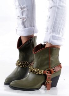 He takes the characteristic features of cowboy boots and is easily used in the design of other species. Often borrowed beveled small heel, which provides stability and at the same time is characterized by wear resistance. Boots can generally have a cowboy look, but have their own specific details, which in fact would not be very convenient when riding. We are talking about the shape and length of the cape or the number of jewelry, since, for example, with chains hanging around the top of the shaft, you can’t ride a horse.