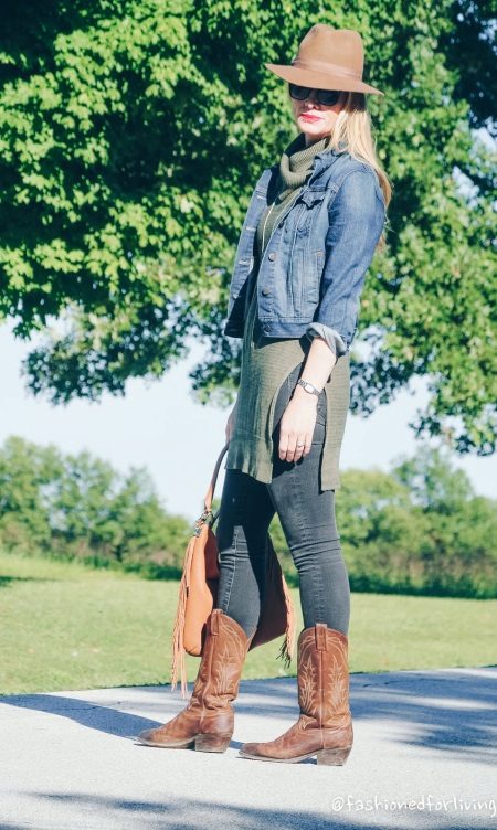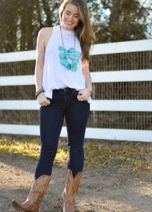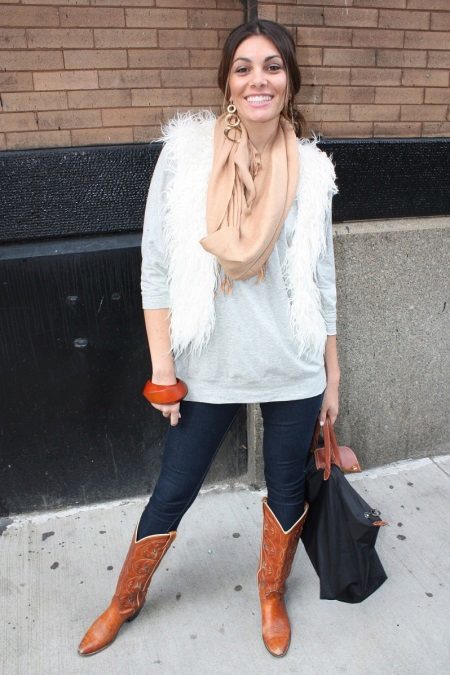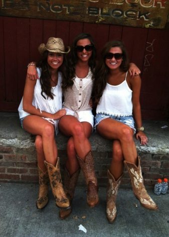 But to wear cowboy boots, it’s not necessary to work on an American ranch. A modern girl can combine these shoes with a light flowing dress, and she will look stylish and charming.
