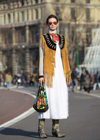 Shapeless bags look good with cowboy boots, especially if they are decorated with fringe.