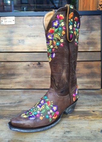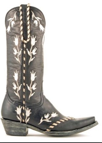For the sake of fashion, cowboy-style boots can be made different in height: either with very short half boots, or over the knee boots.With great pleasure, designers borrow a characteristic line along the surface with which the patterns are laid out. On cowboy-style shoes, these can be completely full-scale drawings of flora and fauna.