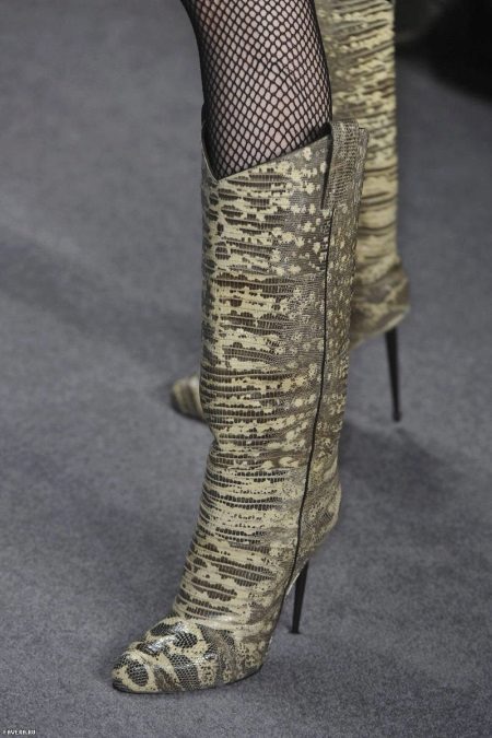 So, winter boots are certainly insulated with fleece or fur, so that your legs do not freeze even in frost. The skin is chosen rough so that it holds its shape well and fits the leg better. In general, winter shoes outwardly no different from the demi-season options, therefore, no less often than they are decorated with decorative elements.
