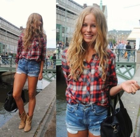 As for the top, then a free casual, not business shirt should immediately come to mind. Of course, a checkered print on clothes will be a classic, but it is completely optional.