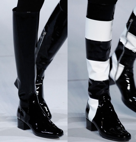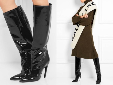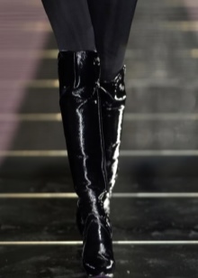 - More often, patent leather boots are chosen by those girls who seek to be in the spotlight. Spectacular shine in combination with a stylish style can become the perfect decoration for a female leg. Such products are characterized by an increased degree of versatility, which is why these shoes can be worn with most of the feminine wardrobe.