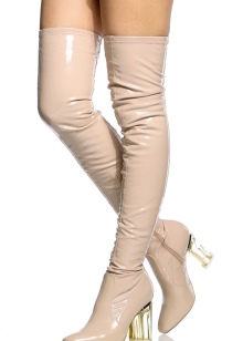Nude shades are popular this year. Beige patent leather boots look feminine and interesting. Such models are universal, because they are successfully combined with most shades of other clothes. They are often decorated with metal elements in gold, which are able to emphasize the status of their owner and become a stylish decoration for patent leather shoes.