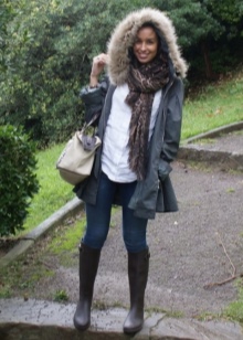 By the way, rubber boots are slightly detached from the leg, and they can be worn with your favorite tight jeans or tight tights, warm leggings. Also rubber boots go well with knitted dresses or long skirts. Outerwear here is suitable, for example, a down jacket, leather jacket, trench coat, sports bomber jacket or parka.