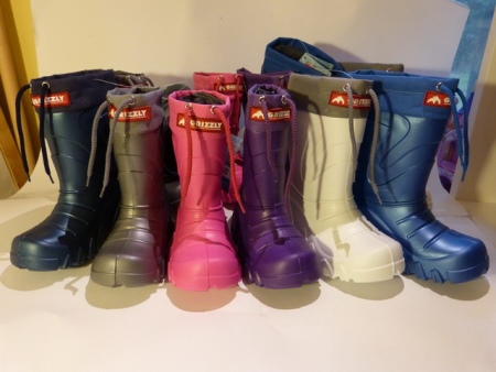 - Grizzly bear - with a cuff and lace on top, suitable for slush, wet snow at - / + 5-15 degrees, with Velcro for fixing the liner. Color range: green (metallic), red (coral), orange, silver, blue (silver), matte blue, sea wave, fuchsia, pink, white, lime, lilac. Dimension grid: 22/23. 24/25, 26/27, 28/29, 30/31 /, 32 / 33.34 / 35