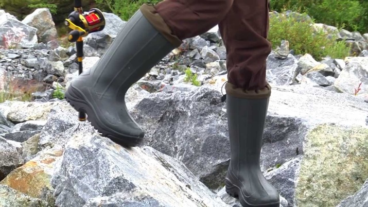 - High wear resistance, the sole is not wiped, resistance to chemicals (oils, solvents), as well as to bacteria and fungi. A thick sole with a tread allows you to walk on ice and loose snow. Waterproof, as they are cast entirely, without seams.