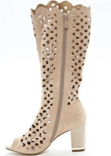The most graceful and perfect model of perforated summer boots are high boots with thin stiletto heels. They are the best attribute of the summer ensemble, emphasizing the beauty of a woman. The heel height varies from low stilettos to 14 cm, allowing each woman to choose the most convenient option.