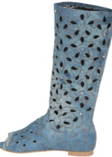 Youth boots made of perforated denim become a priority choice for everyday stylish onions. They often have a flat sole and a wide heel for three quarters of the sole. In addition to rhinestones, fashionable pairs of shoes are often decorated with silver plating. Creative women of fashion choose models with fringe, tassels and metal decor.
