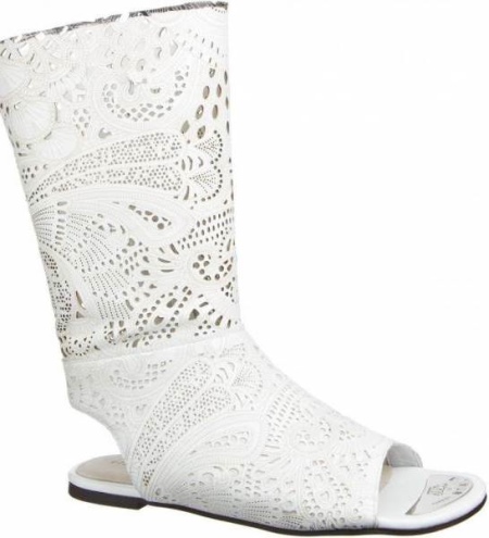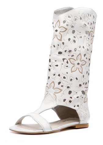 Leather summer boots with a floral pattern look incredibly gentle and feminine. Plain products with large colors and lacing on the front are very popular. The model has an open toe and a narrow shaft, exactly repeating the contours of the leg, visually making it slim.