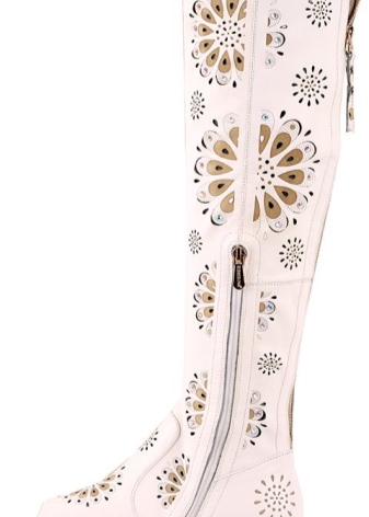 Actual models with an open toe and a zipper on the side to match the tone of the shoe. Openwork boots are decorated with floral perforation. Designers often decorate the middle of each flower and heel with sparkling rhinestones. Thanks to the medium heel, the model can be worn for a long time. In this case, the leg is in the most natural position, and the load on the foot is reduced.
