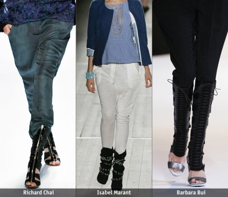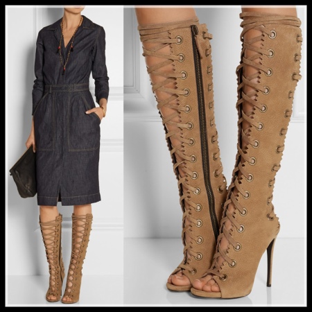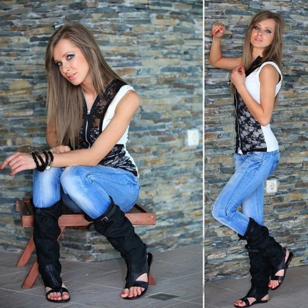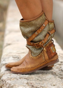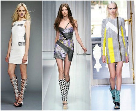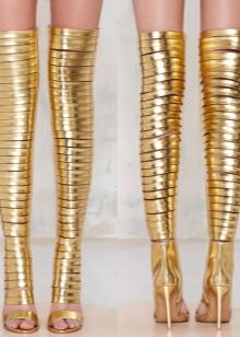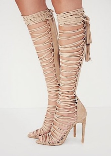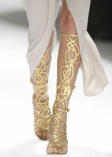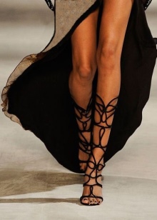 What models got a memorable and proud name? Gladiators are called boots, consisting of leather straps that fit tightly on the leg. Such original and eye-catching shoes should be worn with short shorts and light skirts. To create a romantic look, you can wear a beautiful summer dress or airy sundress.