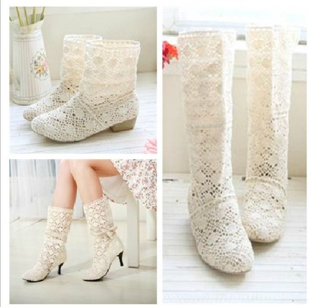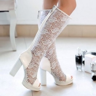 Lace boots look very feminine and gentle. These shoes will be a wonderful addition to the feminine outfit. Such products should be worn with festive and solemn sets of clothes. Lace boots need to be cleaned regularly, as they get dirty quickly, especially when it comes to light specimens.