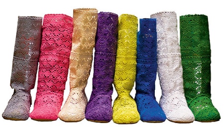 In air boots from multi-colored or plain openwork knitting will be very comfortable and easy. Such shoes will be a great option for the summer season, as it has many ventilated holes. Knitted patterns are effectively combined with many feminine outfits: skirts, shorts, sundresses, dresses and denim sets.