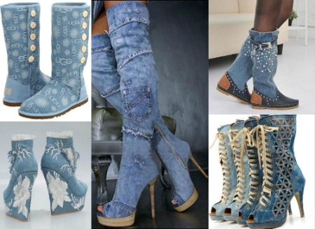Spectacular denim items won wild popularity among fashionistas. These shoes will be ideal for cool weather in the summer season. The most successful is the combination of denim boots and denim overalls, skirts, shorts and jeggings. Solid colored dresses, bright tops and black leather things will look no less impressive with such shoes.