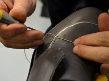 The maestro not only creates a sketch, but also performs a layout on which he draws to the smallest detail all the details of a future product. Then the patterns are cut out and put into development. Only after a successful sample result, the model is introduced into production.