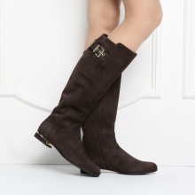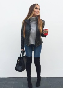 Suede suede models can be worn with blue jeans, a sweater, and a cropped dark coat. Brown boots will create a harmonious bow with a beige sweater dress, a dark green coat with a straight cut and a light scarf-snood.