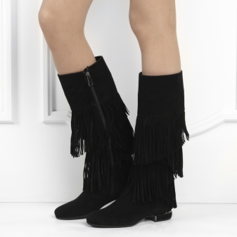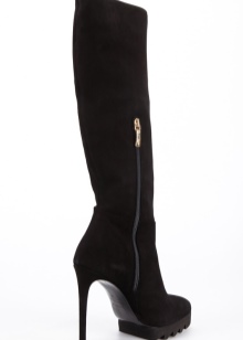 Suede boots on a platform sole and a platform with a deep relief look beautiful and unusually graceful. The wide fur trim is not only a decorative finish, but also an additional protection of the feet from the cold. Some products have a smooth sole and are decorated around the foot with silver metallic chains with hanging ends.