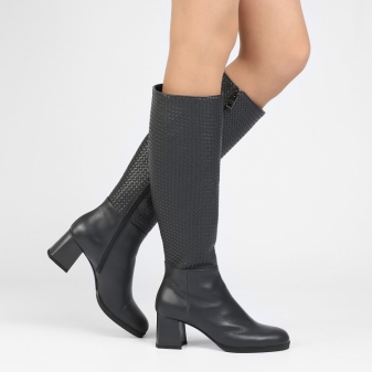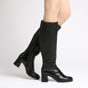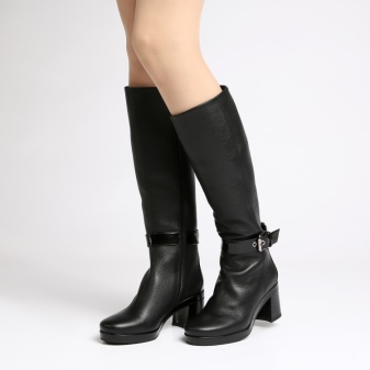 Stable thick heel winter boots are in demand. They are characterized by maximum convenience and less traumatic in ice. The height of the heel of the group varies from 4 cm and above, allowing you to choose the most convenient option for each woman. Leather boots with a more rounded toe, medium heel height and high knee-high are the most sought after choice in the range of the brand.