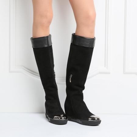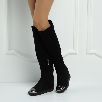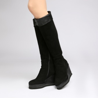 Models on a wedge heel are no less feminine and look very neat. They are comfortable and perfect for dynamic girls. The toe of such boots is more rounded, and the wedge is of different heights. The top of the product can be not only classic tight, but also wide.