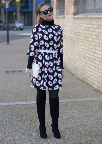 Boots on low speed go well with flared dresses made of knitwear or wool and elongated jumpers or knitted tunics. At the same time, long knitted clothes can be decorated with a belt or belt to match the shoes.