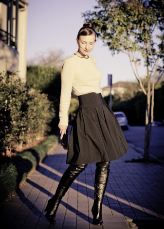 An image with wide boots and a flared skirt is perfect for a country style. Boots with wide shafts or lapels make the bottom massive. Therefore, for a refined image, it is not suitable.