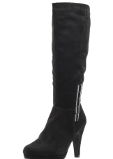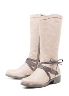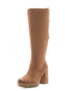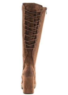 High boots made of velvety textile look very tender and charming. The demi-season model has a thick heel and comfortable lacing on the back of the shaft. Such an original detail will allow you to adjust the width of the boots as you wish.