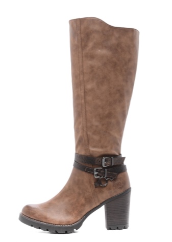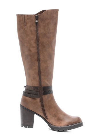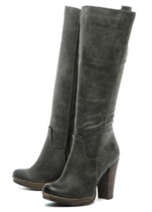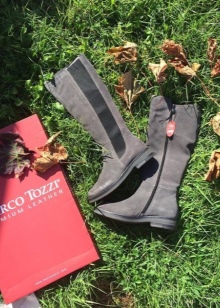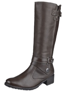 Demi-season boots with a wide top are very popular lately. These shoes fit perfectly into urban looks. Marco Tozzi gives fashionable women a bright textile model, the surface of which resembles brown marble. The boots have a thick and steady heel and decorative straps on the rise.