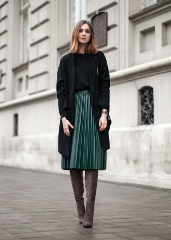 High over the knee boots are recommended to be combined with short skirts or tight-fitting leggings. Such a spectacular combination can not be complemented with too frank clothes. Such an ensemble should not be chosen by the owners of the full figure.