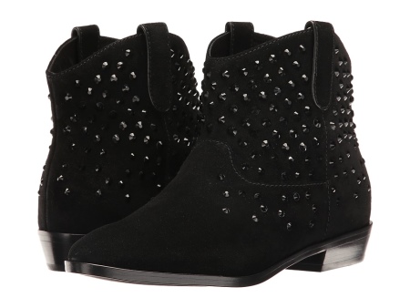 You can decorate a fashionable casual outfit with the help of interesting cowboy ankle boots. The original models of velvety suede are equipped with a small and wide heel. In the ankle and shaft area there are plastic spikes that will look advantageous and shine in sunny weather.