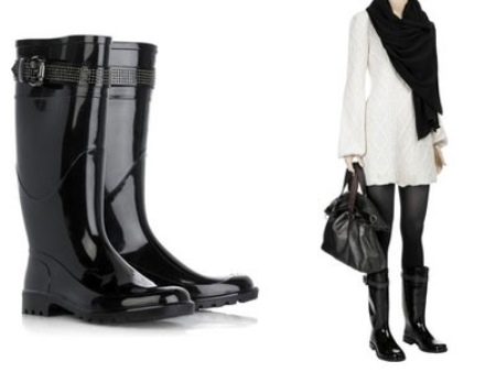 Rubber shoes can complement almost any look. With such boots you can wear not only jeans and warm jackets, but also light skirts and feminine coats.