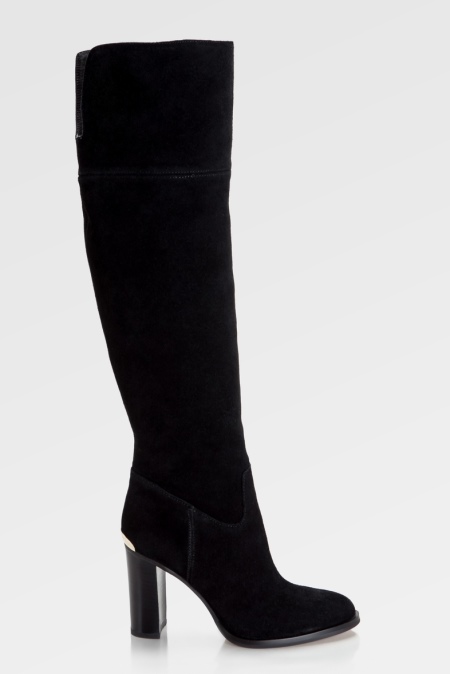 Very feminine and spectacular look suede high models of velvet suede with a stable heel. The upper part of the heel in such products is complemented by a small golden insert that looks advantageous against a background of plain dark shoes.