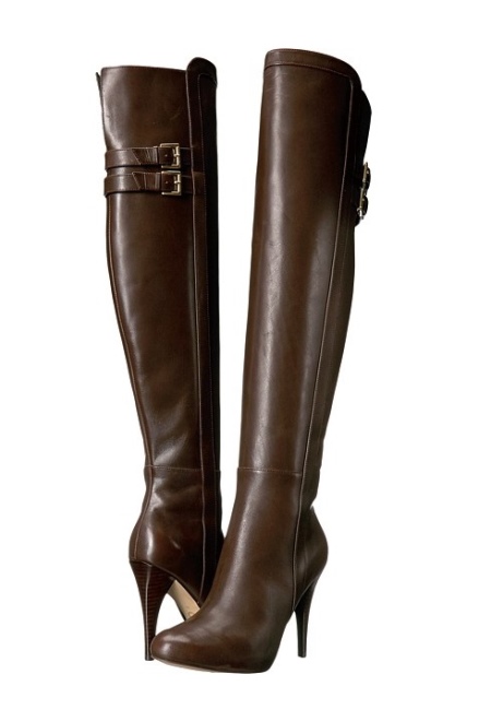 With feminine high heeled boots with a thin heel, it is easy to create a sexy look. Stunning knee-high models with a pointed toe and double buckles on the top look especially beautiful and attractive.