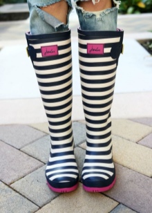 Throughout the history of its existence, rubber boots made a giant leap and from shoes for walking in the rain turned into a fashionable and stylish wardrobe element of any modern woman. Today, there is little to say about the coarse rubber boots with a wide top. Today it is fashionable, beautiful, feminine shoes, to which the most famous world designers devote their collections. Our model article will tell about model rubber boots, the rules for combining them with different clothes and the requirements for care.
