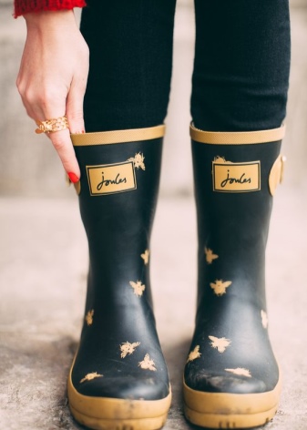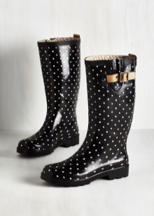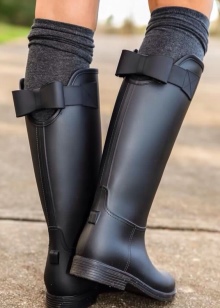 More recently, rubber boots were purchased exclusively for practical purposes. Today, this is a great addition to the autumn-spring look. Classic rubber boots were a model of a very simple design with a wide shaft, sustained in dark colors, without any decor. Of course, such boots would hardly look harmonious with everyday, elegant and business women's clothing.