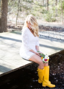 If the dress is designed in a romantic design, then elegant high heeled boots may well approach it. It is good if the boots are decorated with a pretty floral print.