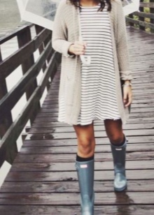 Of course, not every dress model is in harmony with rubber boots, even the most neat and feminine. Various tunics, trapeze dresses, or straight casual models look most organically with boots.