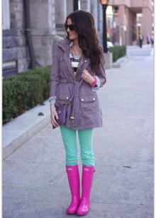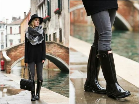 To easily make up a fashionable, beautiful ensemble of clothes, you need to know the rules for combining rubber boots with different things.