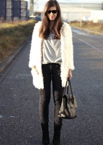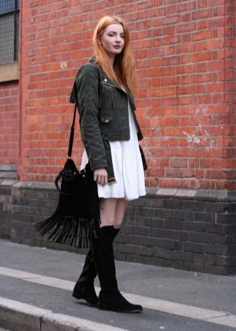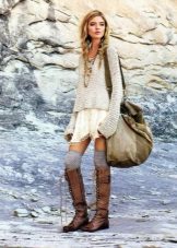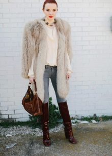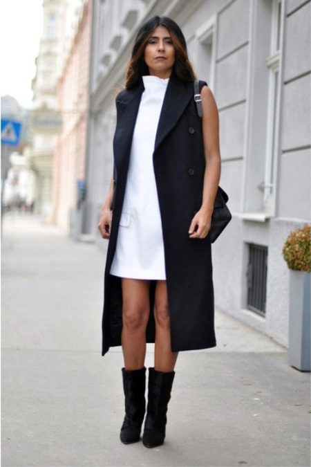 Going on a date? Give preference to wedge or heel boots. Wear them with a short white dress, and on top throw a sleeveless coat. The image will be complemented by a small handbag on a long strap and a discreet make-up.
